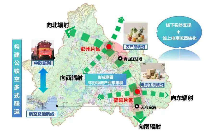 今年,成都商贸服务型国家物流枢纽成功入选“2025年国家物流枢纽建设名单”,包含彭州农副产品及食品专业物流港(彭州片区)和简阳临空经济产业园电商智慧物流区(简阳片区),形成“陆港+空港”双核驱动的发展格局,共同服务国家综合型现代流通战略支点城市等重要战略部署。