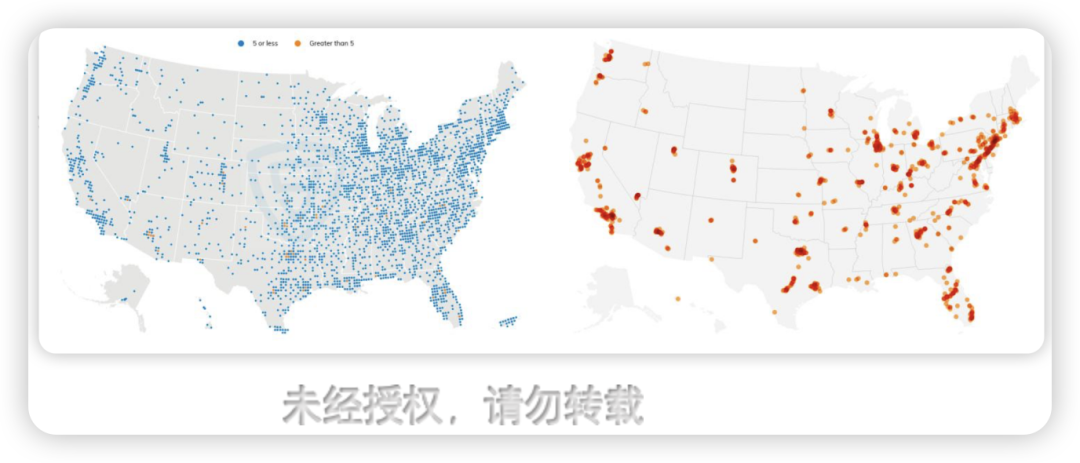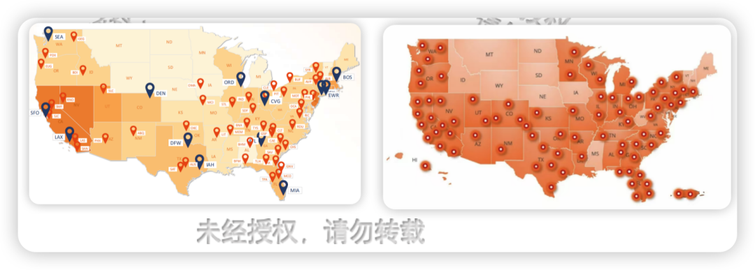 (左图:walmart门店分布图 右图:Amazon仓库分布图)