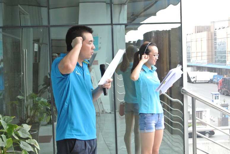 大会进入到宣誓阶段,非油品配送中心项目经理蔡卫东先生带领全体员工领读大会宣誓誓词,现场慷慨激昂,将大会气氛带到了高潮。